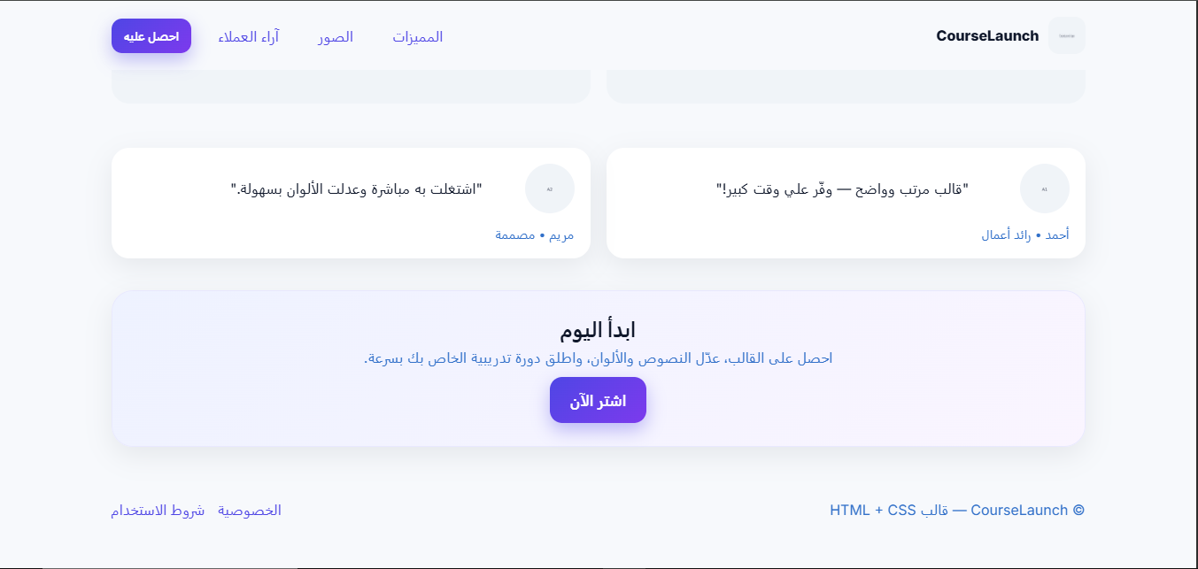 📌 احصل على نسختين من صفحات هبوط جاهزة ومتجاوبة بالكامل باستخدام HTML + CSS فقط: